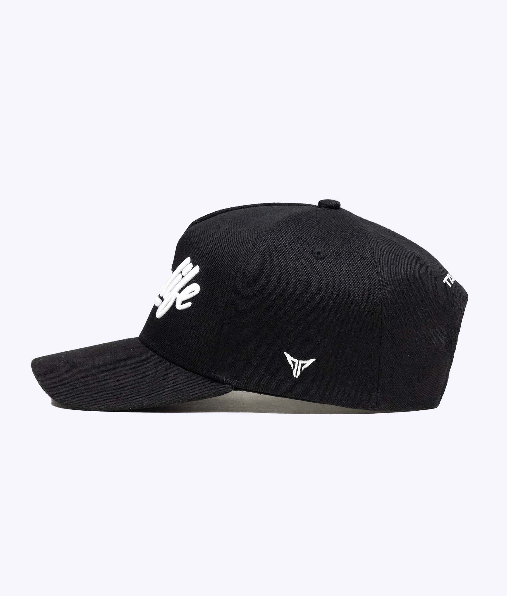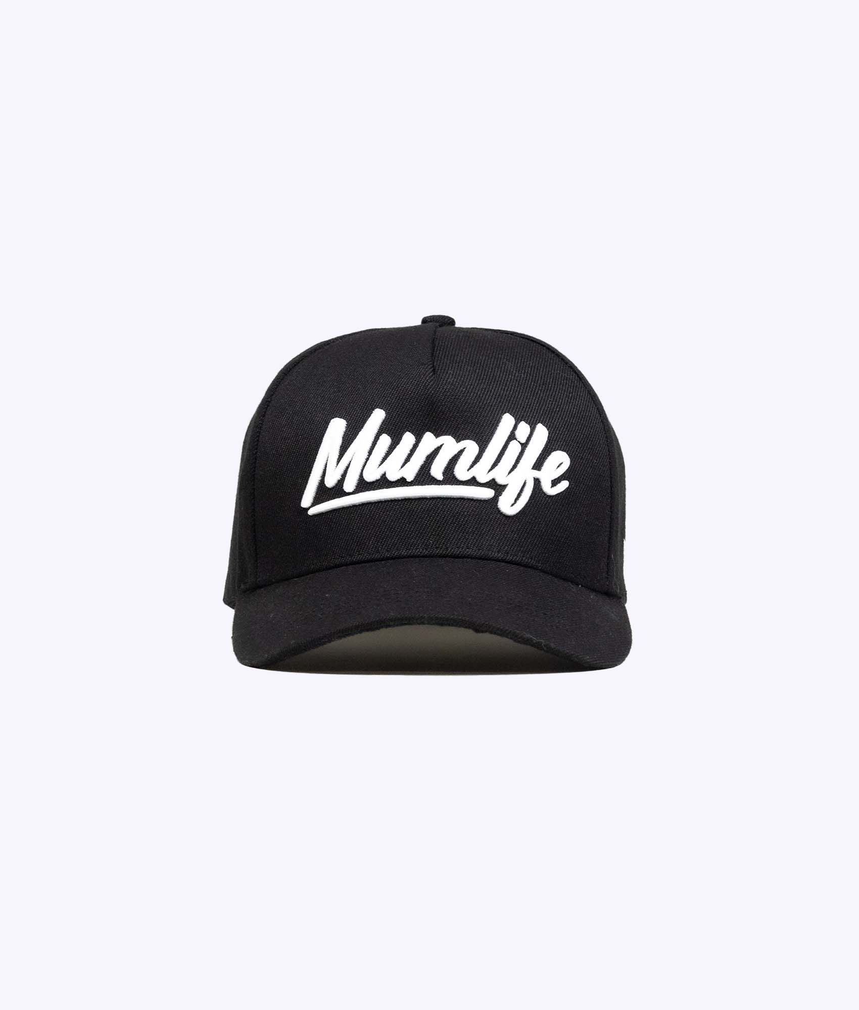 Featuring our custom designed 'Mumlife' font in large 3D white thread embroidery to the front panel, our logo to the side and insignia to the rear in black 2D embroidery.